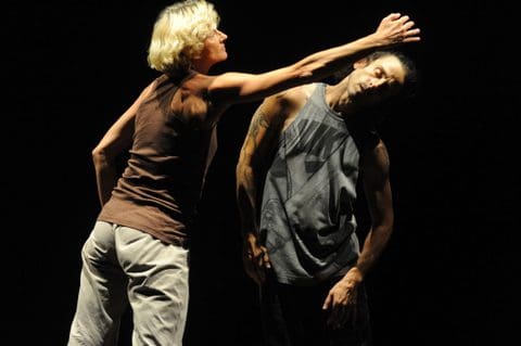 שניהם בסביבות החמישים שלהם, פלוס מינוס, לשניהם מטען רציני ואפשר לומר בשלות, בגרות שהולמים אותם מאד. עידו עדיין לא נפתר עד הסוף מהתנועה המסוגננת, אבל לרב, היא נתפסת כניקיון צורני, דיוק, חיבור מדוד בין שליטה לויתור מחושב. יש אנשים כאלה שהדיבור שלהם מעט יותר חגיגי מהרגיל, אבל אם הם אומרים דברי טעם, שאריות של שונות הסגנון, עשויים להתקבל כחלק לגיטימי משלם מרתק. ועידו בהחלט מרתק. הפעם הוא מרתק דווקא בפרטים הקטנים, ביכולת ליצור אינטימיות מעודנת בזוטי הדברים, כמו אותה סצנה בעבודה השנייה Rust – אותה יצר עם רחל ארדוס, שאתה עבד בהצלחה גם בעבר- שבה בהונותיו מלטפות להרף את כף רגלה של אלווירה. העבודה שנרקדת על שקט, מפנה מקום לכל תשומת הלב למערכת היחסים המעודנת הנרקמת בין שני בני הזוג שמקיימים דיאלוגים מורכבים במבט, הקשבה, במגע עור בעור. סוג של קונטקט, אבל שונה במהותו מקונטקט אימפרוביזציה בכך שהוא לא בא לנהל מערכת העברות משקל ויחסים קינטיים-גיאומטריים שזכורים משנות השבעים והשמונים.