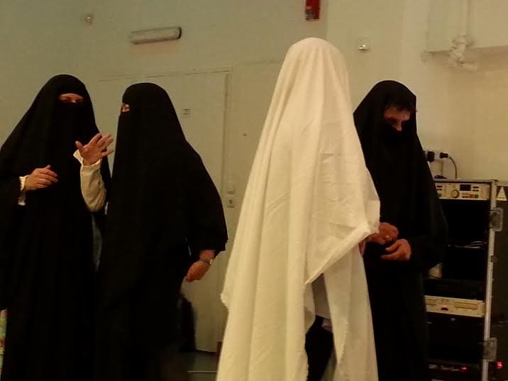 למי שהחמיץ את העבודה בעלת השם היומרני: "האבסטרקציה מרחב לתפילה משותפת": הקהל נכנס לסטודיו, התבקש להשיל נעליו ולהניח חפציו בצד כדי לקחת חלק בטכס שנקרא לו: בואו נלך במעגל בלי להוציא הגה בלי רשות ושמירה על מבט מצועף ככל הניתן. בין התפילות והטקסים הצופים אף לבשו בורקות- סדין עם חור לעיניים כדי להתבונן בזולת.