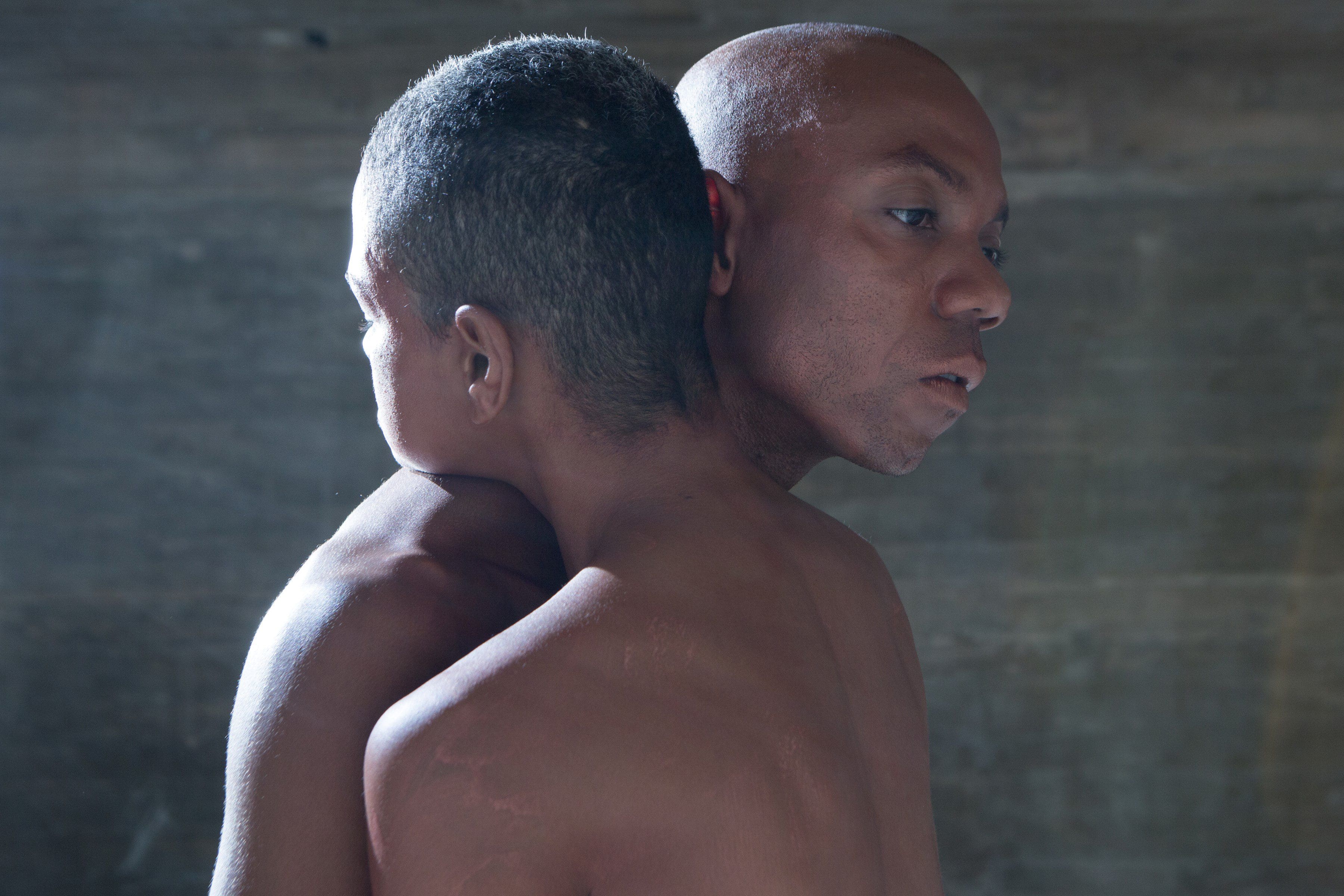 אולם ליאו מודל הוחשך לגמרי ובאפלה הלכה ונתגלה טורסו של בחורה צעירה שחורה בקצהו של חרוט גבוה כמו אוהל טיפי וראשה כמעט ונוגע בתקרה. היא מרכינה ראש וכל יד מחזיקה במרפק הנגדי. חשופת חזה, היא מטלטלת את הזרועות בריתמוס פנימי. הגוף האטום במרכזה של הבמה מוסט לאחור בטרם נחשפו קרביו ובמרכזם סולם גבוה. העבודה שמתחילה במיצב, (אינסטליישן), על גבול עבודה מתחום האמנות הפלסטית, ממשיכה כריקוד בשניים.