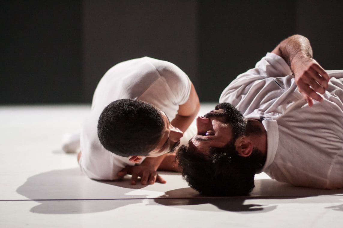 העבודה התחילה עם תצוגת תכלית חזקה ביותר. אני לא חושבת שמישהו ישכח את הטריו בחלק הראשון של TOML, שבו שלושה גברים בחליפות בהירות משלשלים את מכנסיהם שצנחו והתמקמו במנוחה סביב קרסוליהם. באילוץ זה, הם מבצעים כוריאוגרפיה קצבית עם טוויסטים קצביים דקים וידיים שמסמנות בתנועה את משמעות מילות השיר, בטריטוריה זערורית בשל מיקומם הכובל של המכנסיים. זו הייתה תמונה מלבבת, ומעלה חיוך. דדון מצא דרך להפוך סצנה מבוססת הגחכה, למחול שמפליא לפלס דרך תוך אילוצים לא סבירים וללא מבוכה. ידוע שאילוצים הם אבות החשיבה מחוץ לקופסה. הראש של דדון במילא כמעט ולא מכיר את הקופסה מבפנים.